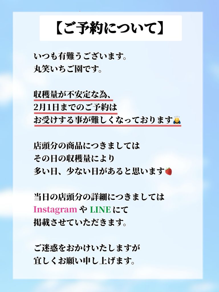 カートを見る ホーム 当園のこだわり 商品一覧 お知らせ&ブログ お買い物方法 送料・お支払い方法 店頭販売について 直売所へのアクセス よくあるご質問 特定商取引に基づく表記 プライバシーポリシー お問い合せ カートを見る 会員様ログイン 〒639-2113 奈良県葛城市北花内75 tel.090-1670-1583 ホーム > お知らせ&ブログ > ご予約について ご予約について2026/01/14 一覧へ戻る